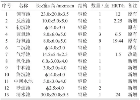 面對新的生產情況及《浙江省印染行業淘汰落后整治提升方案》要求,企業決定對現有廢水處理設施進行擴建、改造,并增加回用水處理設施,實現50%的中水回用率。工程總設計水量為4000m3/d,其中在原有污水站設計能力2400m3/d的基礎上新增設計水量1600m3/d。
